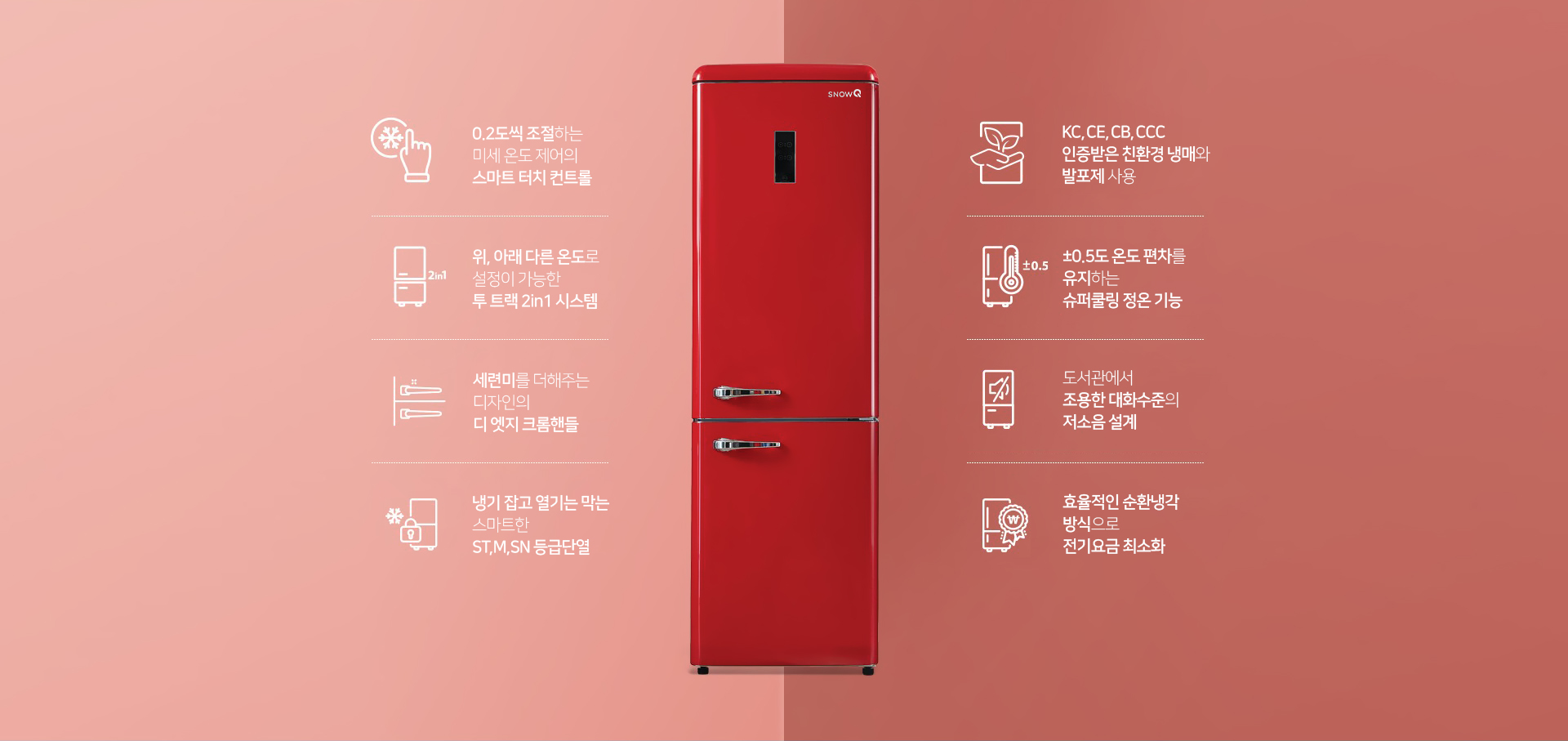 시중에 판매되는 주류 냉동고는 영하의 온도에서 주류를 일정 시간 보관해, 살얼음 상태로 만드는 직접 냉각방식의 냉각고이며, 스노우큐만의 간접 냉각 방식과는 많은 차이가 있습니다. 스노우큐 슈퍼쿨러는 공기를 순환하여 냉기를 전달하는 특허 받은 제품으로 성에가 발생하지 않아 편리하게 사용할 수 있습니다.